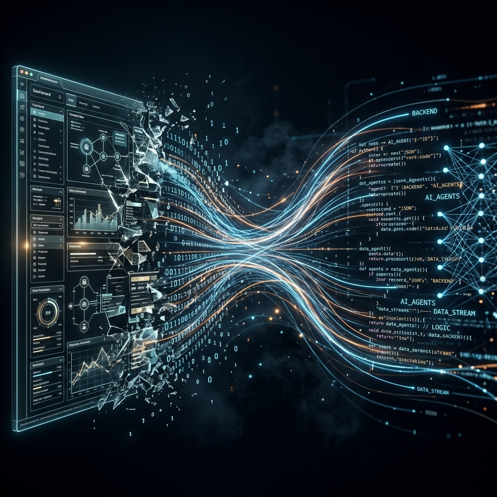 To jest fundamentalna zmiana w sposobie myślenia o architekturze oprogramowania. Zamiast spędzać sześćdziesiąt procent czasu projektu na pixelowej perfekcji komponentów React, walidacji formularzy po stronie klienta i responsywności na trzydziestu różnych rozdzielczościach ekranów — inżynier skupia się na tym, co naprawdę ma znaczenie: logice decyzyjnej, bezpieczeństwie danych i orkiestracji agentów.